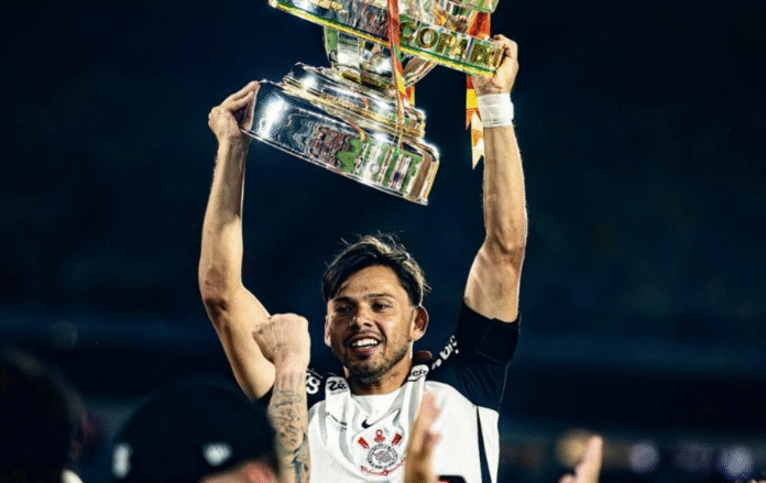 El “Melli”, uno de los ídolos del Timão, no tuvo minutos en el último partido del año, pero fue el encargado de alzar el trofeo, portando la bandera paraguaya en la cintura.