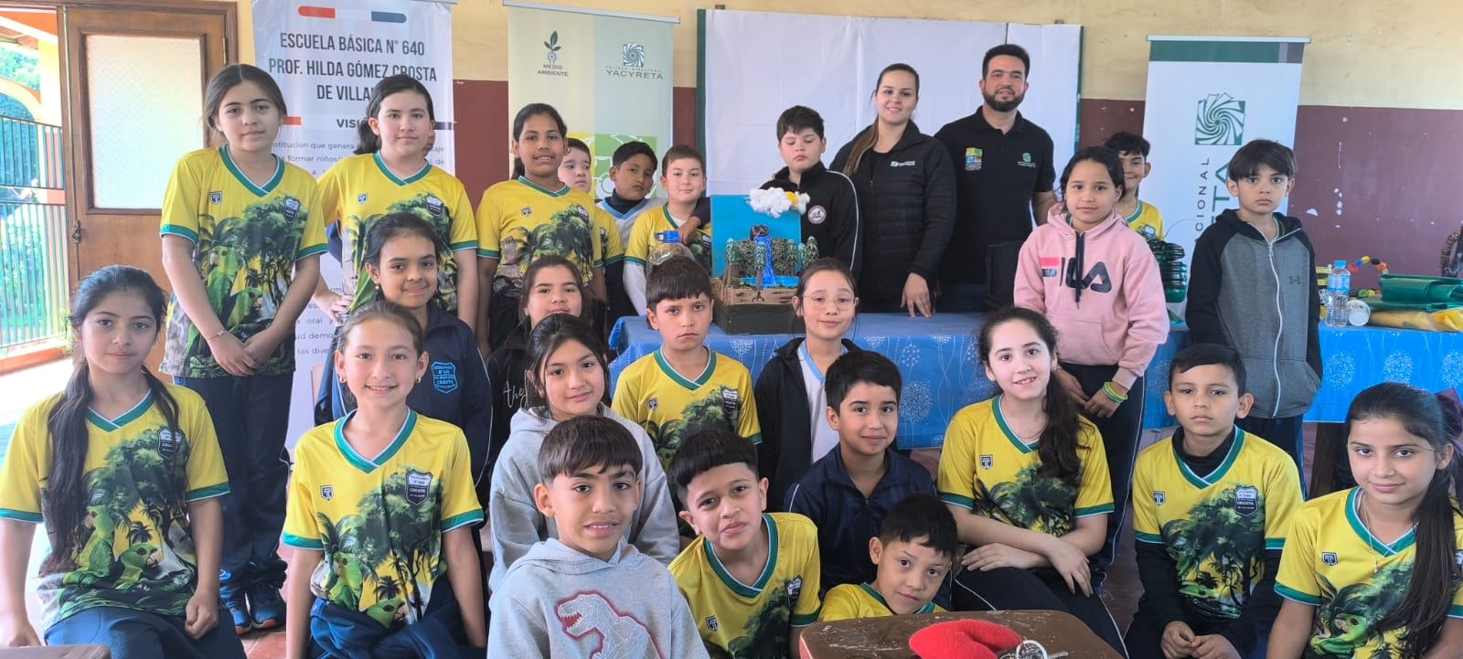 Los alumnos del primer ciclo de la Escuela Básica Nº 640 “Prof. Hilda Gómez Crosta de Villalba”, del barrio San Isidro de Encarnación, participaron en una charla sobre el cuidado y la contaminación del agua, así como sobre la clasificación y disposición de residuos sólidos. La actividad tuvo como objetivo enseñar buenas prácticas y hábitos destinados a reducir la contaminación y promover la conservación del medio ambiente.