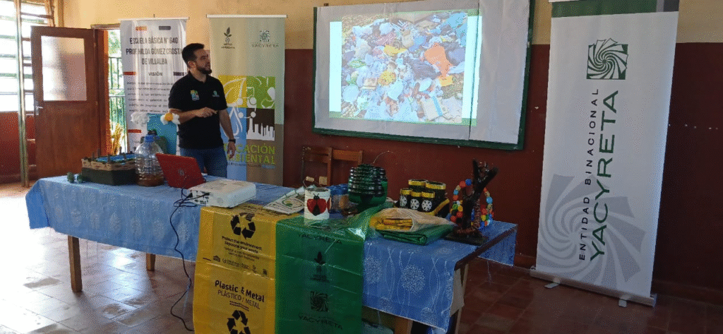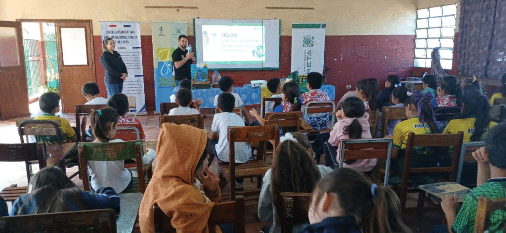 La iniciativa fue organizada por el Programa Educación Ambiental, dependiente del Sector Medio Ambiente de la Entidad Binacional Yacyretá (EBY), y se enmarca en las acciones de formación y sensibilización ambiental que la entidad impulsa en la región. Durante la jornada, los estudiantes recibieron información adaptada a su edad sobre la importancia del uso responsable del agua, las formas en que se contamina y medidas sencillas para evitar su deterioro. Asimismo, se abordaron conceptos básicos de separación de residuos, reciclaje y disposición adecuada de desechos, con énfasis en hábitos diarios que pueden contribuir a la reducción de la basura y al cuidado del entorno.