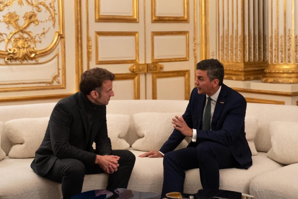 El presidente Santiago Peña fue recibido por el mandatario francés Emmanuel Macron este lunes en París, con quien abordó el reciente acuerdo de libre comercio entre Mercosur y la Unión Europea, anunciado el viernes durante la cumbre del bloque sudamericano, así como la posibilidad de nuevas inversiones del sector privado en Paraguay.
