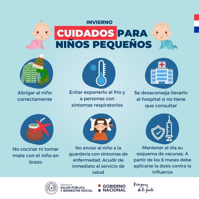 Como primera medida se recomienda abrigar a los niños y niñas correctamente para mantener la temperatura corporal y evitar exponerlos al clima frío, a las precipitaciones y a personas con síntomas respiratorios. Se desaconseja llevarlos al hospital si ellos no tienen que consultar.