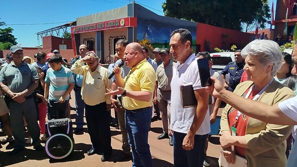 Consejero Germán Gneiting, la Ing. Susana Giménez, gerente del Plan de Terminación de Yacyretá, la delegada de Coordinación Social en Encarnación, Lilian Martínez, entre otros funcionarios. Estuvieron también presentes el intendente de Nueva Alborada, Oscar Martínez y concejales municipales.
